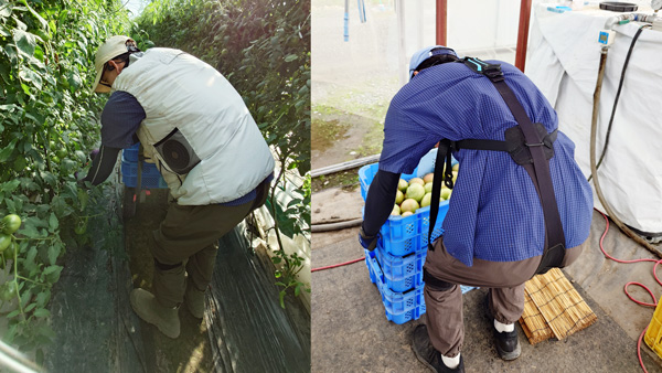 導入した谷口さんは、「前かがみ作業が格段に楽になり、腰痛の軽減を実感した。装着したまま車の運転もできるのが便利」と話します。